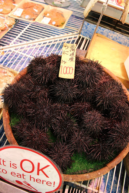 黑門市場是小妹編行程時,必去點的榜首,果然沒令我失望!不去會後悔的~真的!真的會!我是認真的!哈哈哈....雖然,小妹是吃過了才去朝聖,可是也不損我的期望度,一點都不誇張,那天的胃也很爭氣的....把想吃的都吃完了!